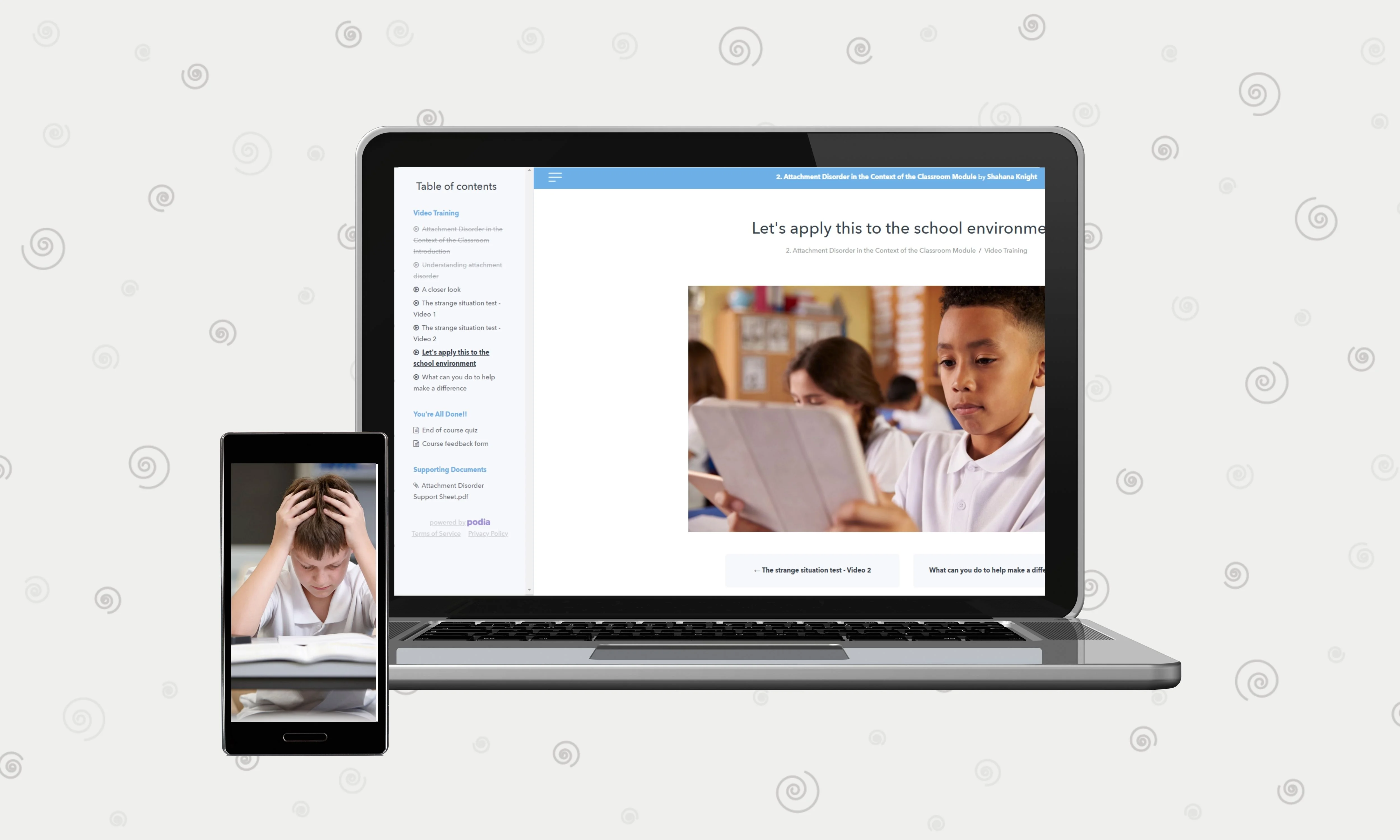 - The therapeutic teaching course, 6 online training modules (see below) for leadership and all staff